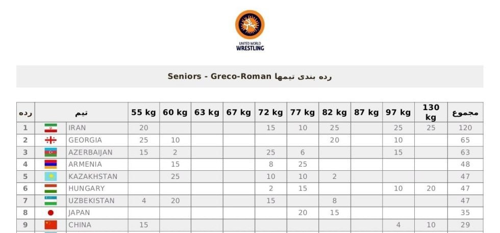 جدول تیمی مسابقات کشتی فرنگی قهرمانی جهان در فاصله یک روز مانده به پایان رقابتها